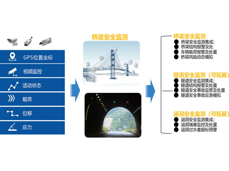 1、完善安全預警機制,輔助橋梁日常管理 當橋梁在特殊氣候、交通條件下監測結果超出預警值時發出預警信號,管養單位及時采取應對措施,第一時間做好應急搶險準備,防止發生進一步的結構破壞和交通安全事故。 2、及早發現橋梁病患,并為橋梁病患原因分析、選擇合理的處治措施提供基礎數據和必要的技術分析依據。 3、驗證設計,減小設計理論不足給橋梁管養工作帶來的不確定性,并為驗證相關理論甚至形成新的設計理論提供最真實的基礎數據資料。 4、橋梁健康監測系統可用于突發事件(車、船撞擊)、災害事件(山體崩塌、滑坡、泥石流、地震等地質災害,洪水、暴雪等氣象災害)發生后的快速結構安全狀態評估,從而為盡早開放交通創造條件,減小事件對交通的影響。 5、通過結構安全監測系統及時評價橋梁的工作性能,確保橋梁安全運營,延長橋梁的使用壽命。