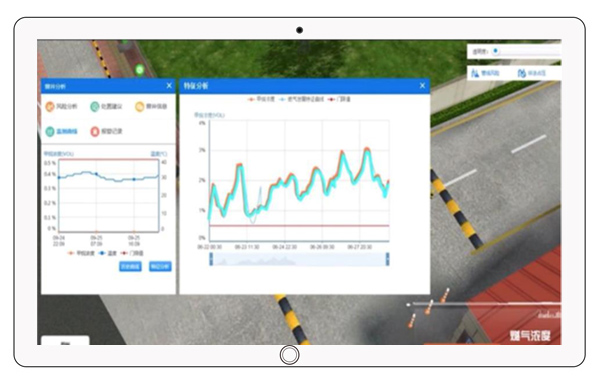 在線監測:通過監測管線相鄰地下空間內甲烷濃度、溫度。系統能實現對管線泄漏實時監測,避免管線泄漏后大規 模爆炸事故的發生。根據監測曲線,采用大數據分析的方法,確定氣體來源,避免地下空間內沼氣聚集發生誤報 智能輔助分析:通過監測數據,根據泄漏擴散模型、泄漏溯源模型、爆炸風險分析模型預測推演可能發生泄漏的管道位置,判斷泄漏可能擴散區域的及爆炸造成的危害范圍 應急輔助決策:根據管網周邊重點防護目標分布、人車流分布分析人員傷亡、建筑倒塌情況,預測管線次生衍生災害,為事故應急提供輔助支撐
