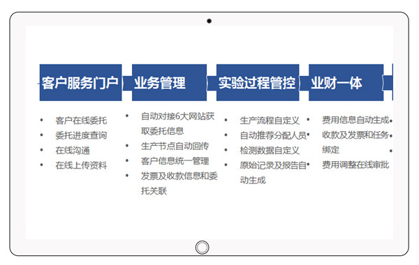 圍繞環境檢測業務特點和管理需求,整合互聯網、物聯網,云計算等相關技術,打造全流程數字化的環境檢驗檢測解決方案。
